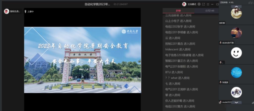 7月12日,禁漫岛 2023年暑期留校学生安全教育线上会议顺利举行,学院副院长王雅琳教授、学院党委黄亚副书记出席本次会议,各年级辅导员及全体留校学生参加会议,会议由学院留校负责老师候晓双主持。学院开展暑期留校学生线上安全教育会议伊始,安全专干朱家明老师讲解暑期安全工作注意事项。朱老师从财务安全、交通安全、实验室安全、寝室安全、防溺水安全、食品安全六个方面对大家进行安全警示教育,提醒大家牢固树立“安全...