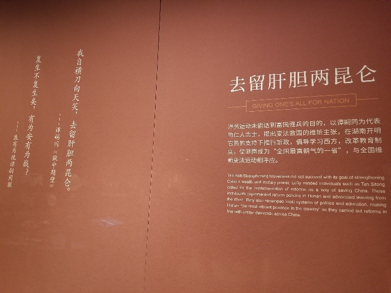 展览里重点强调了湖南在近代革命历史中举足轻重的特殊地位。从洋务运动到维新变法,再到辛亥革命、五四运动等,无数湖南籍的仁人志士在中华民族救亡图存的道路上前赴后继,积极探索中国的发展道路,最后终于完成新民主主义革命,建立中华人民共和国,开启了中国历史的新纪元。