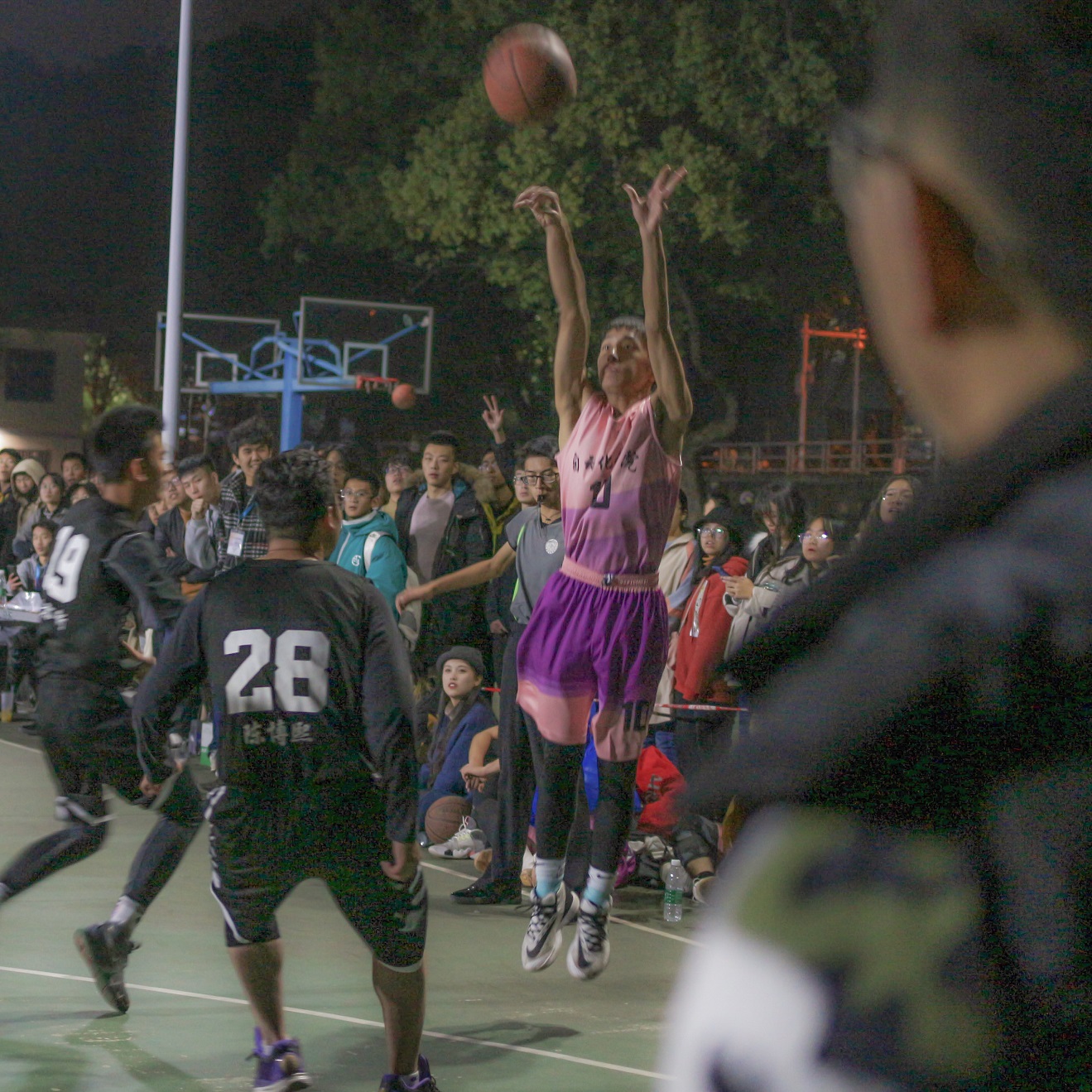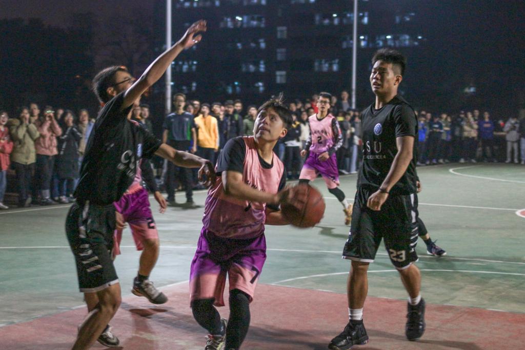 下半场易边再战,双方陷入僵持局面。两边比分交替上升,十分胶着。到场的辅导员老师们和各方球队、球迷在场边呐喊加油。医学四年类抓住禁漫岛