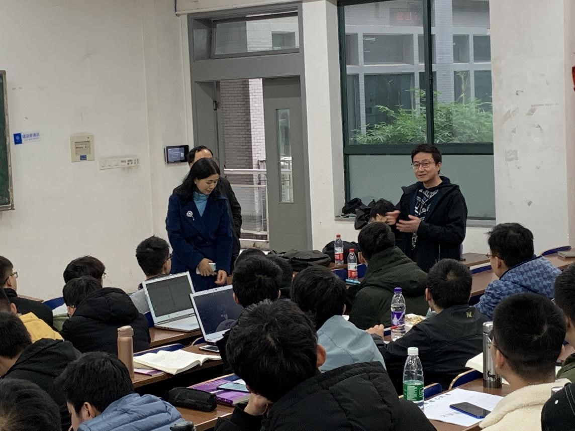 智能科学与技术系主任王勇教授以本学院一位博士生学长毕业后选择从事智能驾驶相关领域的亲身经历为例,生动形象地告诉同学们,智能驾驶是未来发展的一个重要趋势,也是长沙市重点发展的方向,同学们应该抓住“智能驾驶第一城”的机遇,充分利用这样的平台,培养自己的能力。同学们认真聆听会议内容,就自己疑惑的地方及时提出问题,参会教授及老师认真解答同学问题,现场气氛活跃。