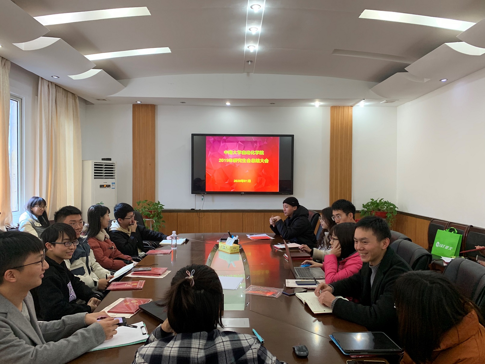 研会2019年总结大会在民主楼210会议室召开,研究生干事刘雯老师以及第二届研究生会各部门成员出席了本次会议,会议由研究生会主席李锐主持。