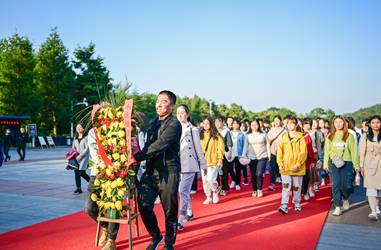 参观完毛泽东纪念馆后,同学们移步毛泽东铜像广场,为伟人敬献花篮。全体师生满怀敬仰之情,庄严肃立,整齐列队向主席像三鞠躬,并环绕铜像一周,表达对伟人的深刻缅怀和敬仰之情。