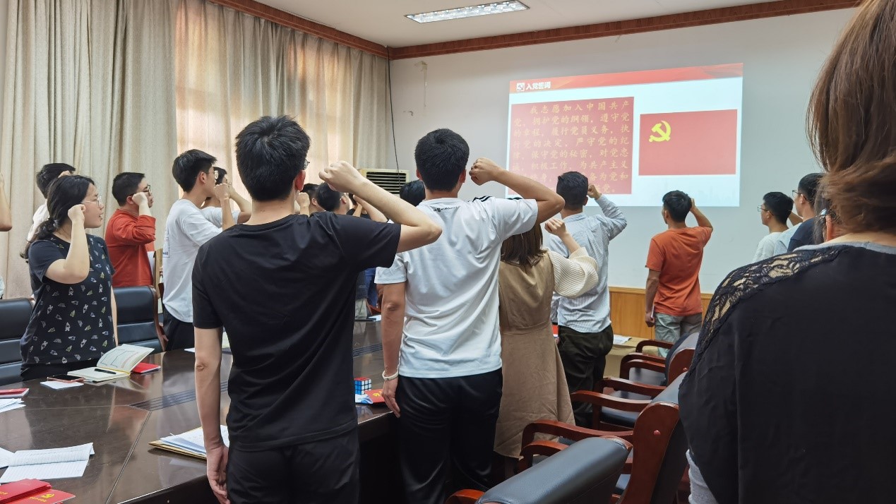 会议尾声,副书记主持了重温入党誓词活动。全体与会党员面向党旗,肃容挺立,举起右拳,庄重宣誓,重温了自己入党时许下的铮铮誓言,再次领会了入党誓词的深刻内涵。