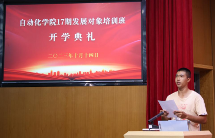 首先,本科生八支部苏航同学作为学员代表发言。出生于党员家庭,父母的言传身教让苏航同学自觉向党组织靠拢。他曾是国旗班的一份子,将鲜艳的五星红旗洒向蓝天,也曾作为边防军人义无反顾地踏上开往云南边境的火车,将两年的青春奉献在管边控边第一线。苏航同学表示,在成为一名光荣的共产党员的道路上,他将不忘初心、坚定信念、勇往直前!