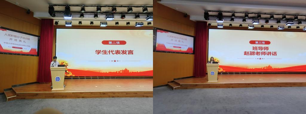 随后,班导师赵勰老师对入党积极分子培训班全体成员表示祝贺,宣读了分党校管理规定以及入党积极分子培训班学员须知。她希望所有同学严格遵守培训班纪律、端正学习态度、积极践行课堂礼仪,将所学知识积极运用于实践中,高质量完成培训班学习任务。