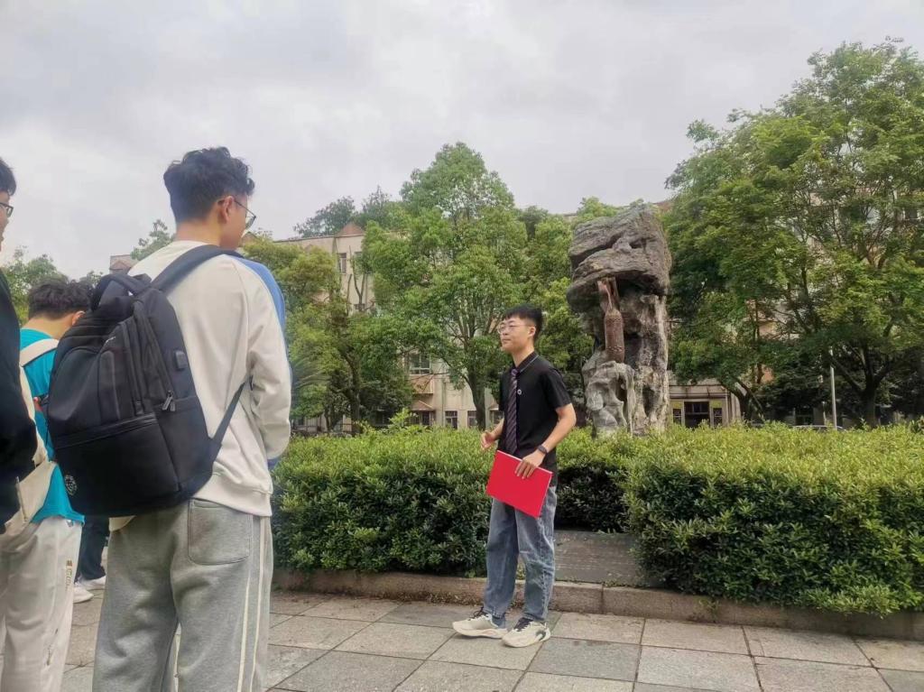 办公楼。接着,他介绍了一座由侵华日军轰炸长沙时遗留下来的炸弹组成的雕塑,基座上篆刻着“铭记历史,振兴中华”的纪念碑文,透过炮弹与碑文,学员们被带回了那个战火纷飞、浴血奋战的年代。而民主楼抗战旧址正是那段浴血抗战的历史见证,也是学校历史的见证,这座历经近百年风雨的红色建筑孕育了众多科技人才,他们的贡献激发了学员们对学术的热忱,坚定了科研报国的志向。