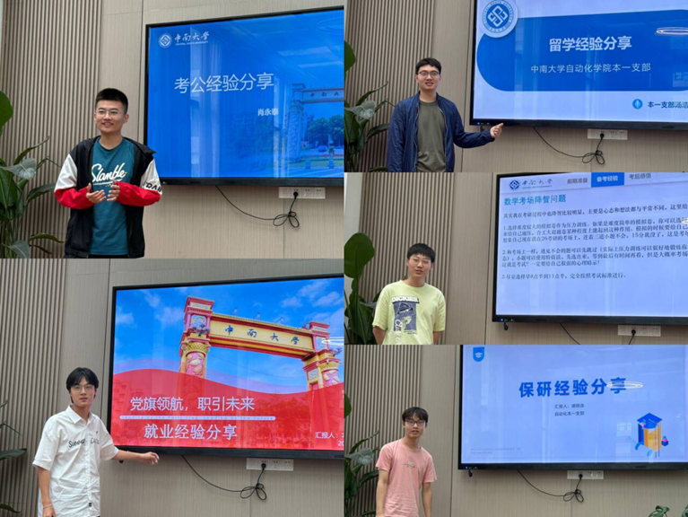 谭锦添同志以保研准备为主题,梳理保研过程中的关键时间节点,为大三同学规划冲刺阶段的策略,鼓励大一大二同学提前夯实基础、积极参与科研实践。潘泳志同志聚焦考研领域,从学习方法、笔试注意事项、面试技巧及考后反思四个维度分享自己的考研心路历程。赵奕杰同志以自身从备战考研到决定就业的心态转变为切入点,不仅分享了求职过程中的经验,更号召同学们无论未来身处何种岗位,都要牢记党员身份,勇担责任,践行使命。汤浩同志立足自身实际,客观阐述出国留学的优缺点及适合人群,为在升学去向上犹豫不决的同学提供了新的思考方向。考公方面,肖永泰同志全面介绍考公选调的准备过程、备考经验及心路感受,为立志考公的同学提供了极具价值的参考建议。