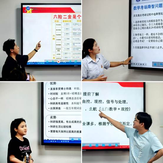 本科生一支部的尚天骄围绕考研全流程,从明确目标、合理规划,深入分享了公共课与专业课的复习心得,并结合自身经历,详细阐述了备考期间调整心态的方法,助力大家全面深入地了解考研。杨晨峻、张俊杰针对科研与竞赛规划、导师联系技巧、材料准备要点及面试环节实用技巧等实际关键问题,结合自身经历为保研同志提供了切实可行的参考与指导。路梦冉总结了直博之路的优势与挑战,强调尽早培养科研能力、积累项目背景的重要性。杨皓凯围绕简历制作、面试技巧、职业选择等核心问题展开讲述,以真实案例为支撑,为支部同志提供了就业的实用建议。