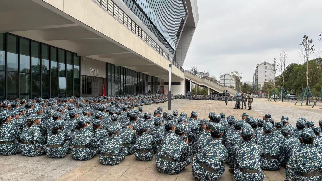 秋日微凉,风携清爽。校园军训场上,身着迷彩的新生们精神抖擞,在和煦的秋风中迈着整齐步伐,新一天的充满挑战的军训任务如期开启。