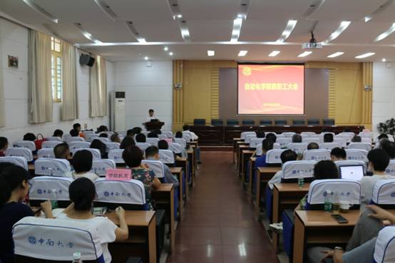 8月23日上午9:00,学院全体教职工大会在民主楼小礼堂顺利召开,全体在家院领导及120余名教职工参加了此次会议。会议由党委书记王一军教授主持。