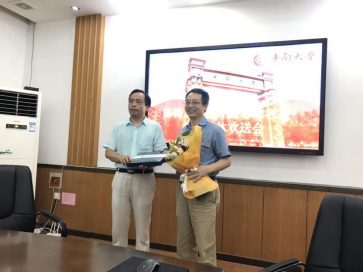 电气工程系的建设与发展所付出的辛勤劳动表示感谢,对他们光荣退休表示衷心祝贺,希望他们一如既往地关心学院发展,常回学院指导工作。唐建湘老师和陈有根老师分别回顾了两位教授在科研和教学中的工作历程,讲述了与其昔日相处的动人情节。现场播放了已毕业学生精心录制的祝福影片。学生代表上台向退休教授献上鲜花,与会教师代表纷纷发言,共同回忆与两位教授共处同事时的情景,对他们的师德、学术贡献等方面给予高度评价,表达了对他们几十年如一日辛勤工作的敬佩和不舍之情。黄挚雄老师动情地抒发了自己的退休感言,言语中流露出对与同事一起工作美好时光的留恋,对教师这个职业的热爱,饱含着对领导、同事以及学生的依依不舍之情。