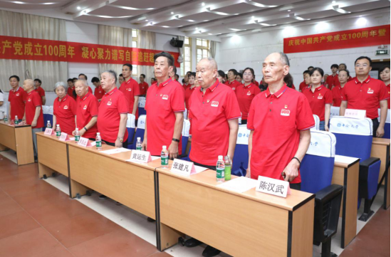 伴随着《在灿烂阳光下》优美的歌声,党员们缓缓入场。下午3时,王一军书记宣布庆祝大会开始,全体起立,高唱国歌。