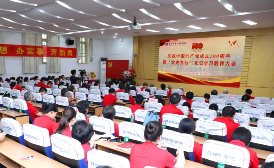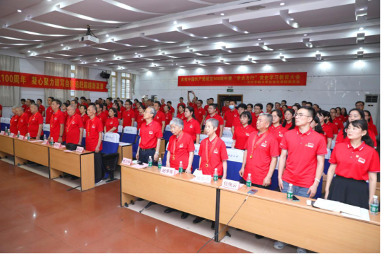 庆祝中国共产党成立100周年暨“学史力行”党史学习教育大会在民主楼小礼堂隆重举行。参加会议的有中国工程院院士桂卫华教授、学院光荣在党50年老党员、全体党委委员、全体教职工党员以及部分学生党员代表,共计120余人。大会由学院党委书记王一军教授主持。