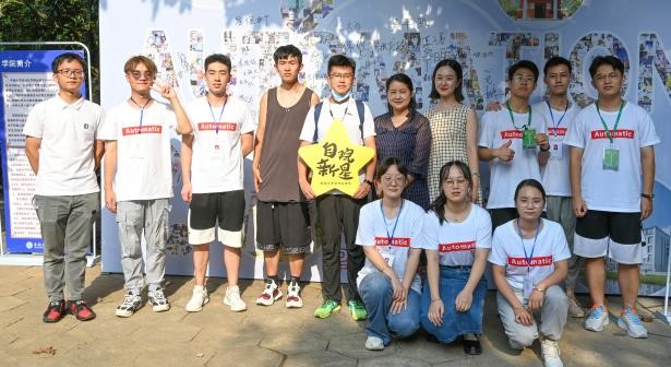 。”随后将矿泉水递到学生和家长的手中,并接过他们手中的行李,整齐地摆放在板车上。与此同时,志愿者们还会贴心地提示学生打开健康码、通行卡以及核酸证明,方便学生快速通过安检,进入校园。在推着行李引领新生前往宿舍的途中,志愿者们还会为新生介绍校园的布局、中南的文化以及长沙的古迹,希望每一个新生都能打消初入大学的陌生感,开启美好的大学生活。到了宿舍楼栋下,值班的志愿者们会安排新生签到,邀请新生在迎新展板上签上自己的名字并合影留念,随后送上辅导员们精心准备的禁漫岛