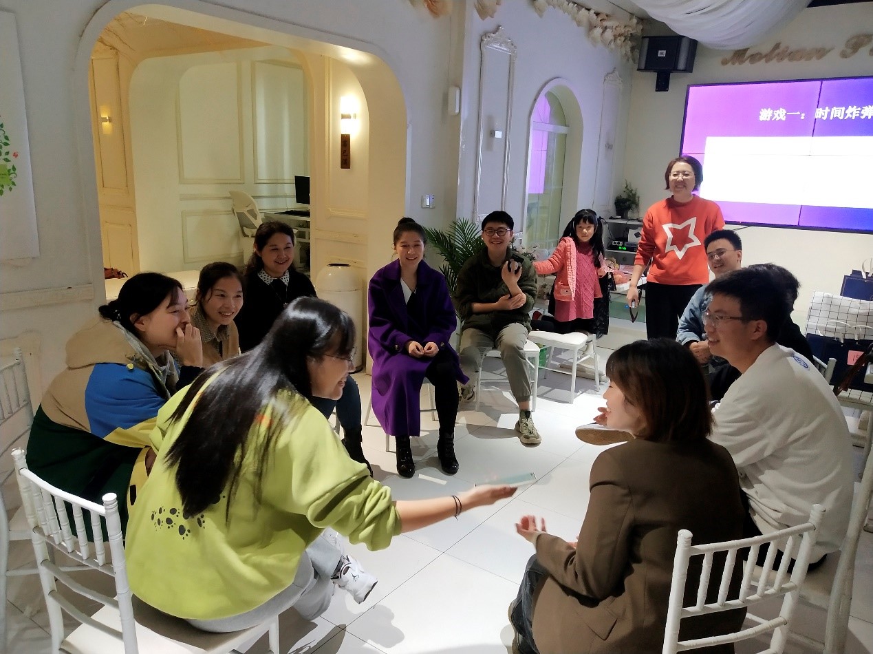 各位老师分享完读书感悟后,学班主任张巧丽老师组织了丰富多彩、趣味横生的团建活动,既有个人赛积分,也有双人搭档闯关,还有集体合作,既有脑洞大开的智力比拼,又有你问我答的真心话大冒险,现场爆笑不断、欢乐无比。最后根据积分大家都得到了精致有趣的盲盒小礼物。