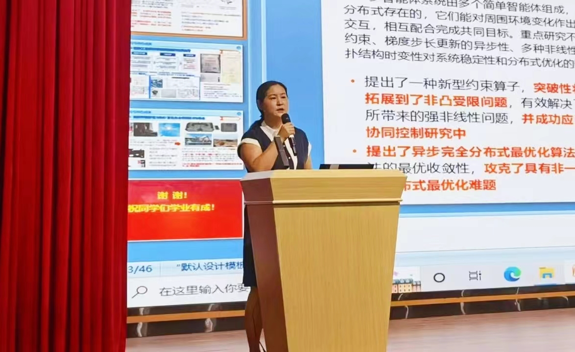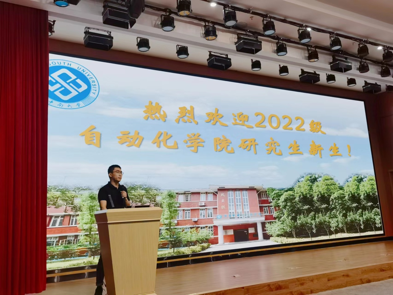 研究生办公室的周前、胡艳老师分别就研究生管理事项、新生选课注意事项做了说明。2022级研究生辅导员陶卓敏老师对新生们进行了入学教育。