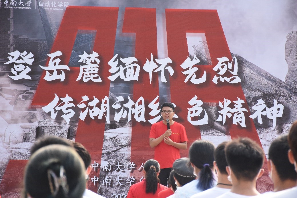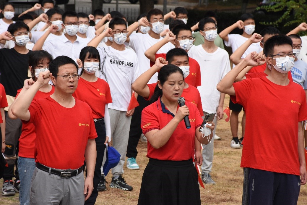 党委黄亚副书记带领同学们庄严宣誓。“我愿继承先辈遗志,自尊自爱,自立自强,不忘国耻,不辱使命,勤奋学习,报效祖国,做时代有为青年,为中华民族伟大复兴而努力奋斗!”铿锵有力的誓词响彻省园,同学们的斗志与信心被彻底点起,饱满的热情洒满整座岳麓山。
