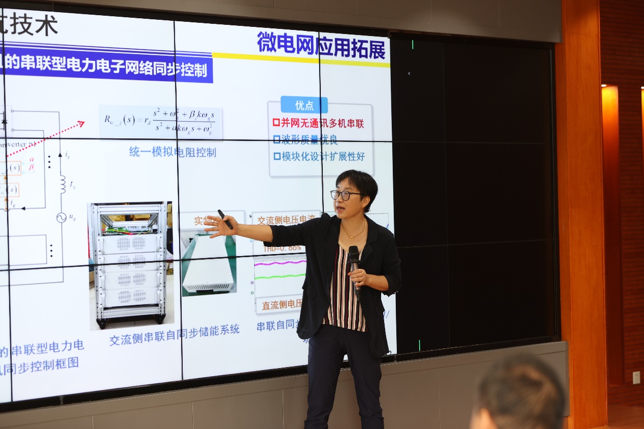 副院长粟梅教授、国网湖南电科院唐海国博士、中车株洲电力机车研究所张志学教高、湖南大学郭祺副教授、长沙理工大学匡文凯老师五名专家依次就电力电子设备柔性控制技术及在电网中应用等方面的研究成果做了主题报告,进行了解读分享和探讨交流。活动中,湖南省电力有限公司公司总工程师梁剑与上述五位主讲专家们深入探讨电力电子设备技术及其在电网中的应用场景。他指出,电网企业未来面临“保供”和“转型”两大挑战,电网数字化转型和电力电子控制技术是构建新型电力系统的关键。参会专家的主题报告在新型配电网电力电子支撑方面带来很大启发,梁剑总工程师表示希望以本次活动为契机,结合湖南省电力有限公司“双创中心”的建立,加强与各参会单位的科技创新合作,从电网实际问题和需求出发,催生一批具有引领性、带动性的创新型技术成果,并转化到实际应用中,共同推进湖南电网的发展。