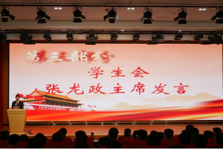 学生会主席张龙政以“做一棵大树”为主题做现场发言。他结合自身求学经历,从主人翁意识、时间意识、提前意识和反馈意识等四个方面向大家分享了如何做好学生工作。他认为,学习成绩是不可忽视的,新生们在过好大学精彩纷呈的生活的同时,也要守好学业的底线。