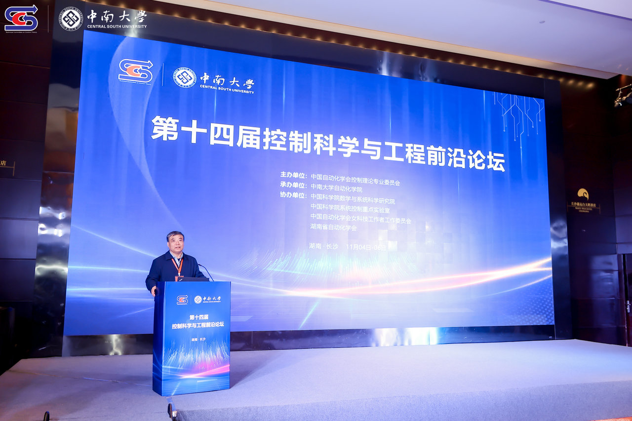 的发展和取得的成就,并表示控制科学与工程前沿论坛是中国自动控制领域的品牌学术盛会,本次论坛邀请国内外控制科学与工程领域的顶级专家、学者共聚湖南长沙,相信一定能带来学术上的交流、思想上的碰撞、成果上的绽放,进一步促进学校控制科学与工程学科的发展。