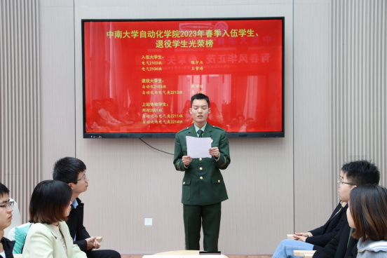 共有5名同学网上报名,经过严格的审查、体检、选拔,最终2位同学顺利入伍,他对入伍同学表达了衷心祝贺,同时对两位退役复学同学表示热烈欢迎。