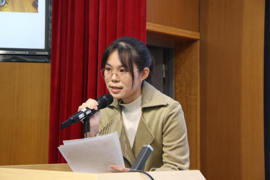 学院团委副书记江文怡作团委述职报告。报告主要从思想引领、实践与竞赛、志愿服务和网络宣传四个方面进行述职,并对下一阶段的工作进行规划和展望。