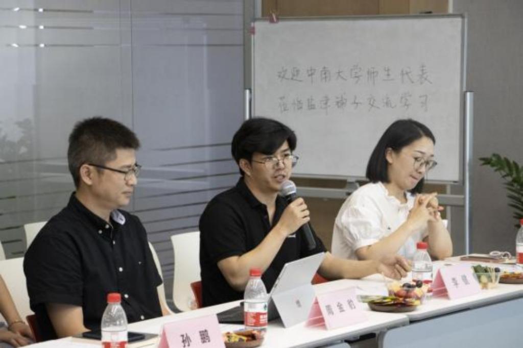 在互动环节,孙鹏、周金豹和李健三位企业校友代表向大家分享了自己在盐津铺子工作的心路历程和职场经验,学长们以自身经历为主展开叙述;同学们也积极提出诸如如何提高自身能力、提升认知需要做什么等问题,并得到了企业负责人耐心详细的回答。