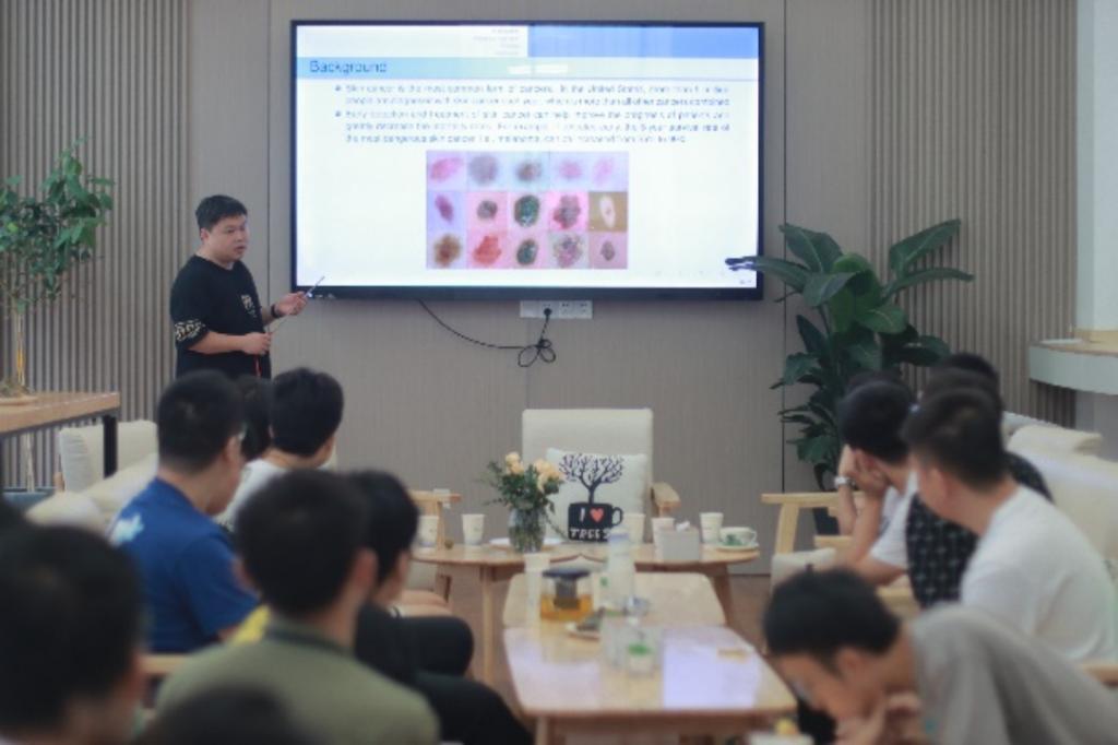 何小宇博士针对基于深度学习的皮肤肿瘤图像智能识别关键技术研究进行了汇报,介绍了基于多模态图像的方法在皮肤癌诊断中显示出的巨大性能,以及现在普遍采用的通过卷积神经网络提取特征再对特征进行串联的方法存在的问题。接着,他介绍了为解决上述问题而提出的共同注意力融合网络(CAFNet)。