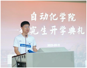 老生代表马润洲、新生代表越铂淳分别发言。马润洲说,作为研究生,学习知识和学术研究是奋斗的主题,并建议大家树立一个奋斗目标,做好时间管理,养成良好生活习惯。越铂淳代表新生做出“以使命为重、勇担时代责任,以实干为先、练就过硬本领”的承诺。