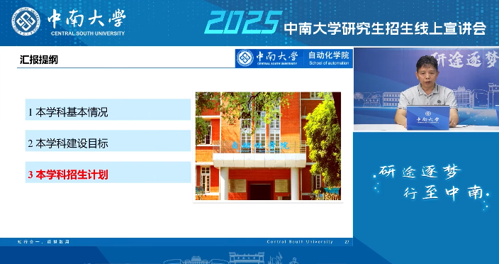 研究生培养的基本情况,回应了直播前期考生最为关注的内容。随后,学院自动化科学与技术系主任蒋朝辉教授、电气工程系主任孙尧教授、人工智能系书记赵于前教授携其精心准备的招生宣传文案,向大家详细介绍了各个学科的研究方向、特色及优势、人才师资力量、科研实力等内容。