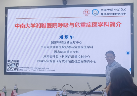 参观结束后双方在新校区信息楼330会议室座谈,湘雅医院呼吸与危重症医学科主任潘频华,呼吸科第三党支部书记、副主任李敏,呼吸科第四党支部书记、副主任李园园,呼吸科副主任冯俊涛及禁漫岛