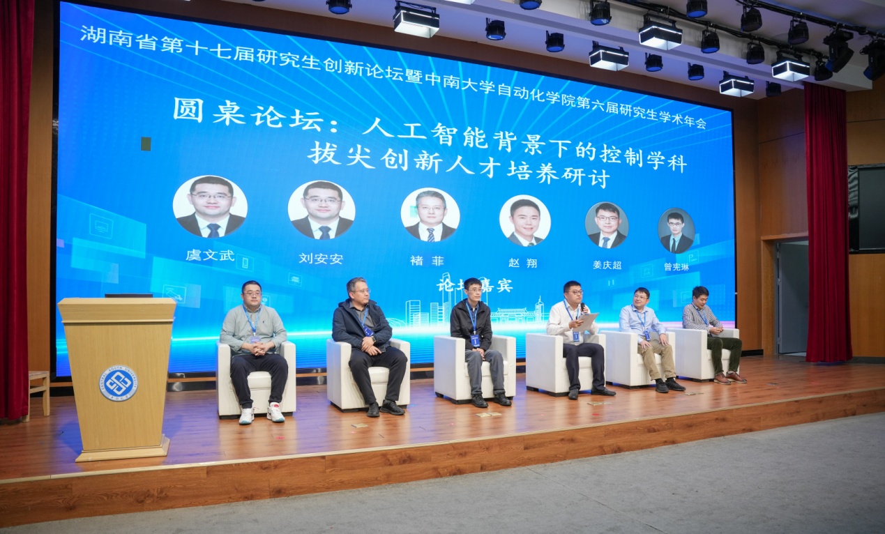 新设的圆桌论坛环节成为了本次活动的一大亮点。该环节邀请了六位控制学科领域的知名专家学者,以及台下研究生代表共同参与。与会者围绕人工智能背景下的控制学科拔尖创新人才培养展开了热烈讨论,就“如何围绕解决‘卡脖子’问题展开研究生培养”、“研究生的核心知识和技能如何在生成式人工智能时代变革”等议题进行了深入探讨。