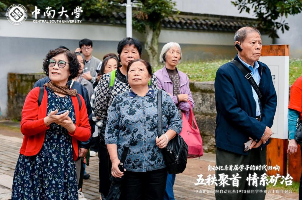 院史长廊,了解学院自创立以来的发展历程与最新科研成就,感受学院在新时代展现出的蓬勃朝气。校友座谈会上,桂卫华深情回顾了五十年前的求学时光,言语间充满对同窗情谊的珍视与对五秩聚首的欣喜。易险峰也亲切说道,此次相聚是跨越半个世纪同窗情谊的延续,希望校友们常回“家”看看。下午,校友们到岳麓山校区民主楼、潇湘校区校史馆参观并偶遇了正在军训的2025级本科新生,学长学姐的深情寄语和学弟学妹的热烈掌声共同定格下薪火相传的感人画面。