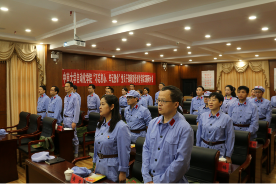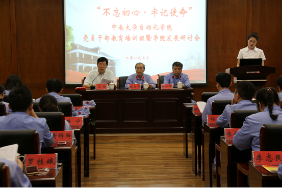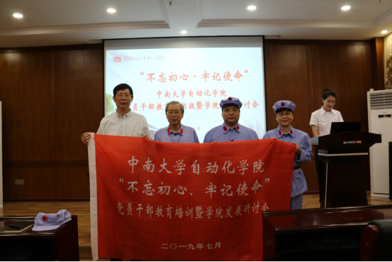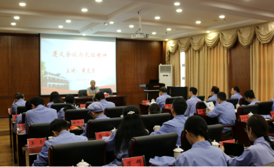 一行的到来表示欢迎。桂卫华院士致开幕词。他说,1935年在贵州遵义召开的遵义会议,确立了毛泽东在党和红军中的领导地位,在极其危急的情况下,挽救了党、挽救了红军、挽救了中国革命,是中国共产党历史上一个生死攸关的转折点,标志着中国共产党在政治上走向成熟,是人民军队走向胜利的重要里程碑,具有不可磨灭的历史意义。希望通过此次培训,全体学员能够把遵义会议精神、长征精神领悟到、消化好,转化成强大的工作动力。学院党委书记王一军讲话。他要求全体学员要在习近平新时代中国特色社会主义思想的引领下,切实做到不忘初心、牢记使命,为学院“双一流”建设作出更大贡献。授旗仪式结束后,遵义市委特聘党史专家黄先荣以“遵义会议与长征精神”为主题为在座的学员带来精彩一课。