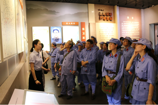 17日下午,全体学员来到红军山烈士陵园。红军山上,苍松翠柏,学员们身穿红军服,踏着沉重的脚步走进当年的战火硝烟。高耸入云的烈士纪念碑上刻着邓小平同志题写的"红军烈士永垂不朽"八个大字,学员们怀着无比崇敬的心情向革命先烈敬献花篮,垂手肃立,向红军烈士纪念碑深深三鞠躬,表达对先烈的敬仰之情。在纪念碑前,学员们面向党旗庄严地重温入党誓词,表达了对党的坚定信念和为党的事业奋斗终生的决心。随后,学员们缓缓走过红军烈士英烈墙、红军坟等,集体聆听邓萍烈士英勇牺牲和红军坟、红军医生的故事。革命前辈们的家国情怀和奋勇担当令学员们纷纷动容、深受震撼。