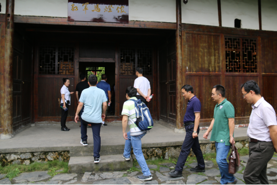 学院学科发展战略研讨会结束后,全体学员来到苟坝会议会址。苟坝是一块高山环绕的田坝,东西北面都是海拔一千多米的山岭,一片葱郁。坝子南北长约3公里,东西宽1公里,坝子间有起伏状像睡葫芦的小田坝,苟坝独特的地形非常有利于红军隐蔽。在蒙蒙小雨中,山岭间白雾笼罩,苟坝村显得更加宁静祥和。苟坝会议会址是一座老式黔北农家三合院,木结构建筑,有一百多年的历史。