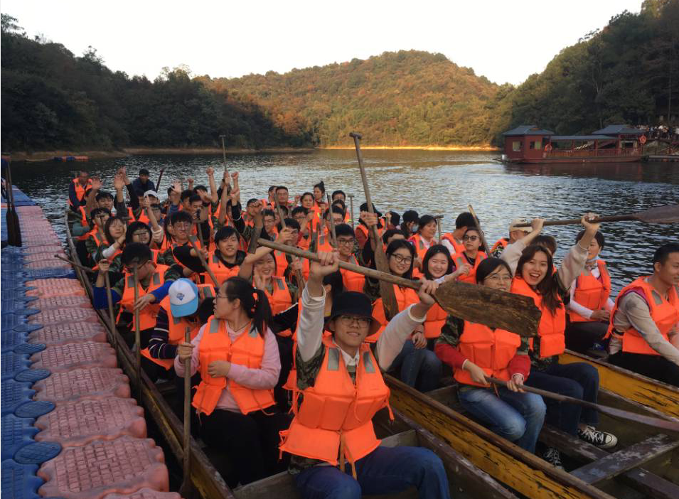 午餐后,大家迫不及待的投入到“丛林穿越”的团队协作游戏中,活动中同学们感受到了惊险的高空探索体验。随后的“勇闯玻璃桥”,则让大家在高空中俯瞰整个石燕湖景区。高山丛林之美,尽收眼底。最后一项龙舟大赛集体合作项目,则充分调动了大家的积极性。在大家齐心协力的配合下,水上龙舟活动既充满了竞技意味,又显现了团队的合作性与凝聚力。