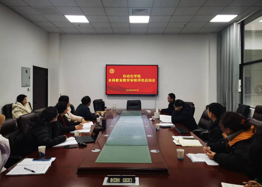 第二轮本科教学审核评估工作研讨会”。自动化系主任蒋朝辉教授、自动化系支部书记董密教授、自动化专业负责人凌玉华教授、电工电子基础中心支部书记李飞副教授、学院各系教学副主任及教务办、学办相关老师参会研讨,并参加评估材料准备和撰写工作。