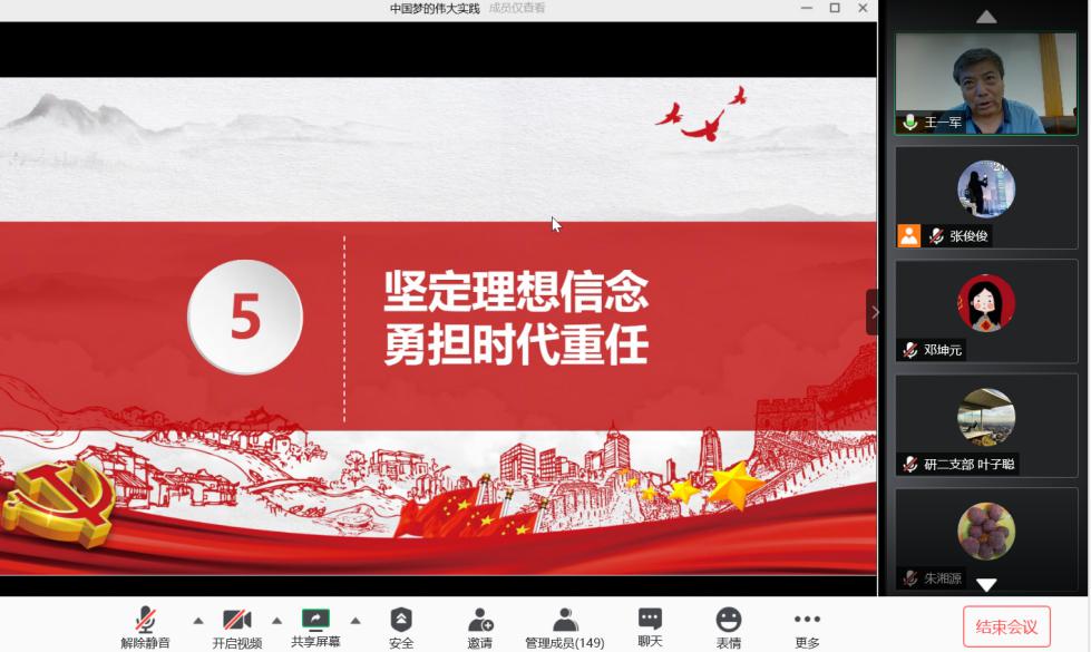 为深入学习贯彻习近平新时代中国特色社会主义思想和党的十九大精神,持续开展 “不忘初心、牢记使命”主题教育,根据校党委的工作部署,禁漫岛 于6月15上午10时开展线上党课,学院党委书记王一军教授以“中国梦的伟大实践”为题为全体毕业生党员授课,全院150余名毕业生党员参加。 王一军书记从生活实际出发,讲述了我国从建国初期的百废待兴到新世纪新时代改革开放中国人民生活发生翻天覆地的变化,深入浅出地阐述了只...