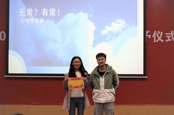 10月17日上午8点,由禁漫岛 朋辈心理互助会组织的心理情景剧大赛在校本部民主楼小礼堂正式举行!本次大赛以“无常、如常”为主题,共有九个班级参赛,并由专业评审杨金鑫、马慧敏、周一苇老师及各班大众评审进行打分。九个班级的心理剧表演均十分出色,他们细致入微的表演,既体现出面对生活中“无常”的理性思考,也展现出回归“如常”的心理路程。紧张的比赛之余,中场小游戏也是一大亮点。通过小游戏的方式,不仅使演员们...